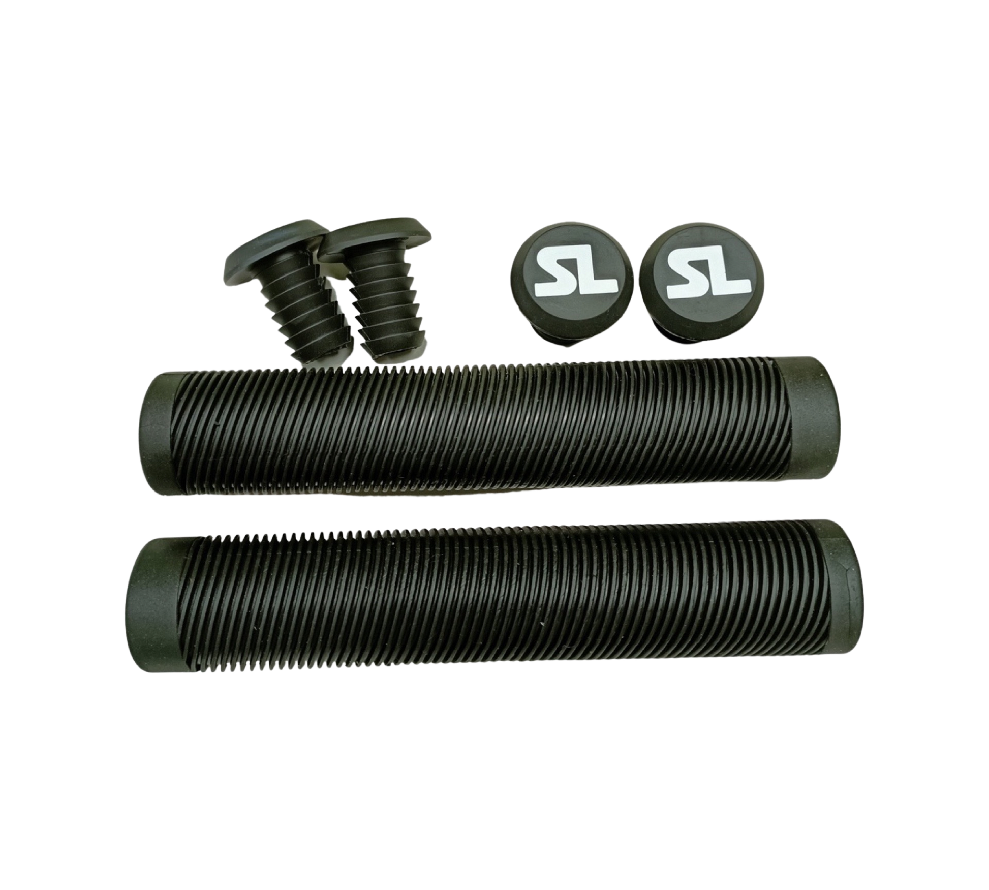 Get a Grip! Well ideally you should get two grips which is lucky as these are sold in pairs. 150mm medium soft for a comfortable and secure hold that won’t wear out on their first day at the park. Less is more design with a clean colourway. Make beautiful bar spins. Nylon bar ends with our sick SL logo.