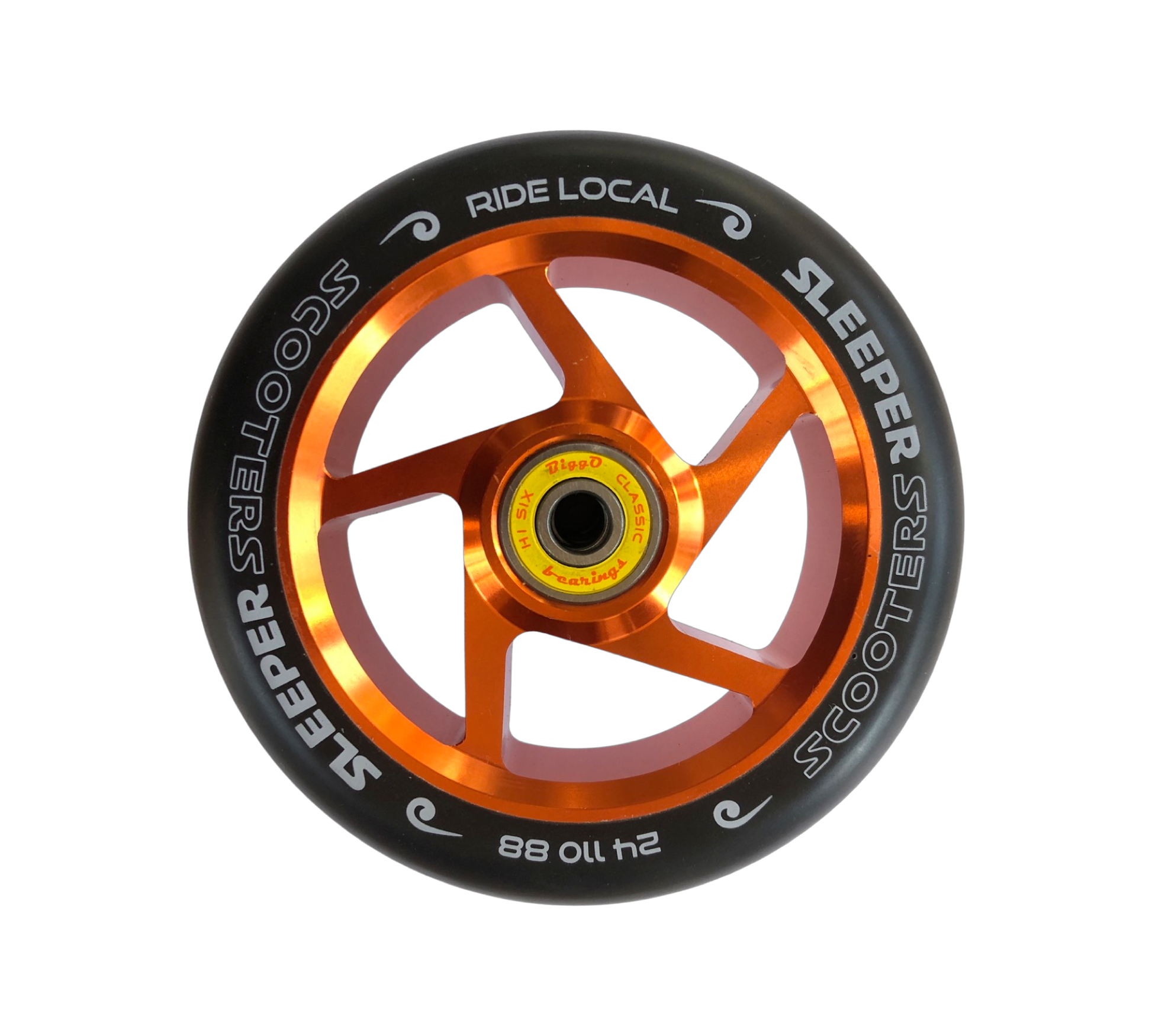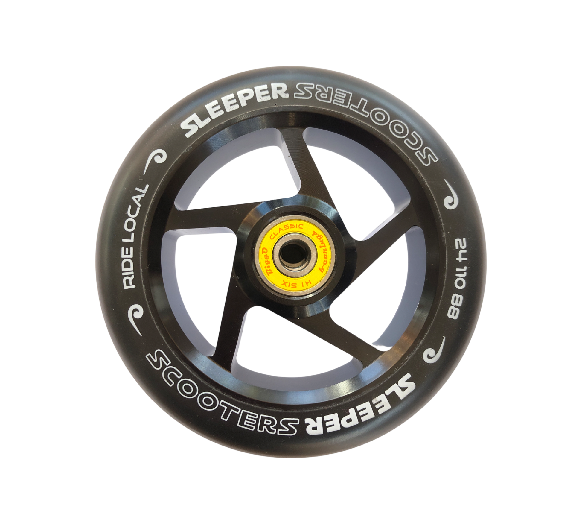 As supplied on all the Sleeper Alloy Completes the High Five wheel specifications continue the light but strong theme - even though they only weigh 245 grams these wheels will not de-core. Industry standard polyurethane spec of 88a gives the best grip vs wear combination. All our wheels come supplied with the best preinstalled bearing of ANY wheel.